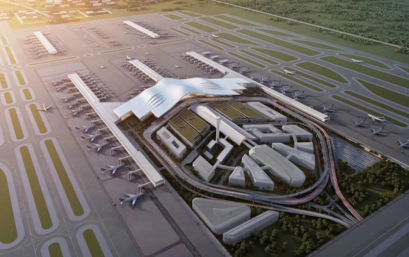 烏魯木齊天山國際機(jī)場(chǎng)的擴(kuò)建工程是國家“十三五”“十四五”重點(diǎn)建設(shè)項(xiàng)目,總投資約520億元,規(guī)劃建設(shè)兩條4F級(jí)跑道、50萬平方米的T4航站樓、177個(gè)停機(jī)位及綜合交通中心等設(shè)施;航站區(qū)采用“主樓+三指廊”構(gòu)型,地上四層、地下一層,可容納年旅客吞吐量3500萬人次,貨郵吞吐量55萬噸