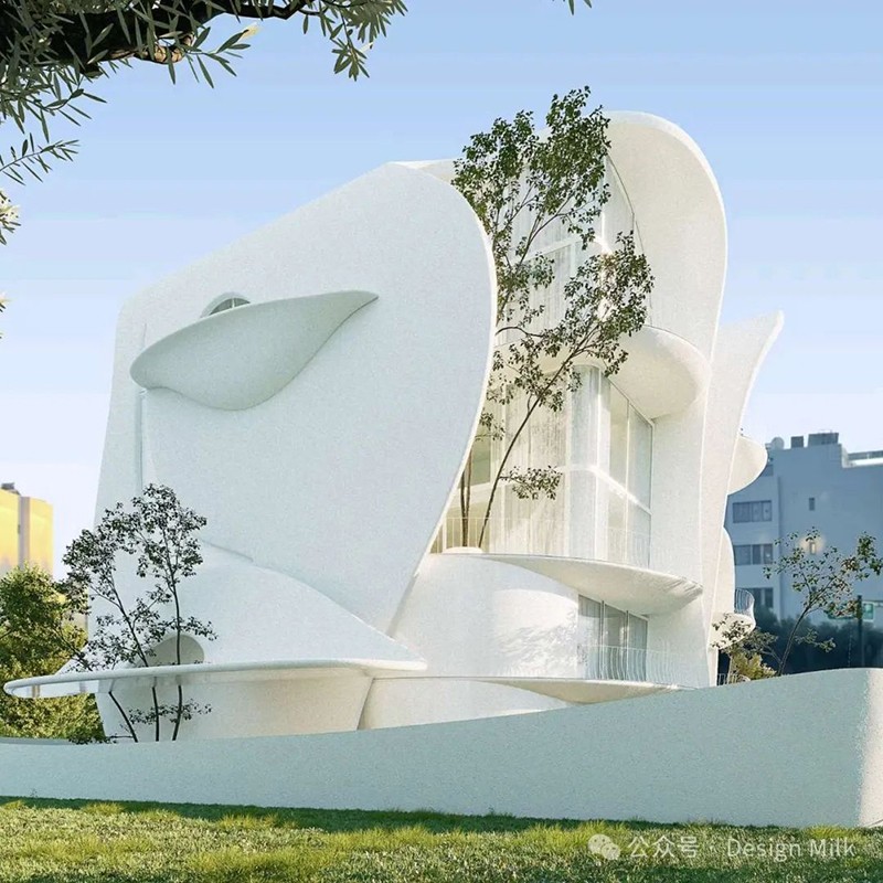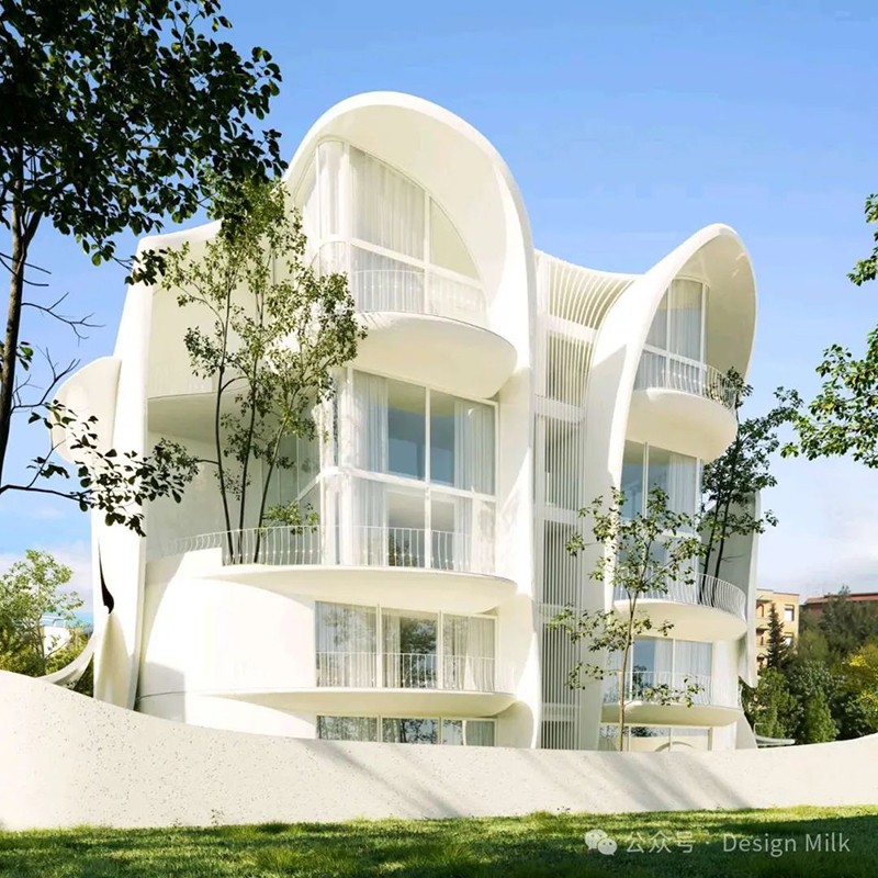314 建筑工作室設(shè)計(jì)的新建筑以其雕塑形式和流暢的線條為特色,營(yíng)造出一種運(yùn)動(dòng)和活力的感覺(jué)。 建筑的正面以流暢的曲線和有機(jī)形狀為特征,類似于巨大、飄逸的窗簾或時(shí)間凝固的波浪。 這些元素賦予建筑一種柔軟和流動(dòng)的感覺(jué),與城市建筑中常見(jiàn)的剛性線條形成鮮明對(duì)比。